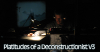 Platitudes of a Deconstructionist is an ongoing quest to explore new and increasingly less accessible methods of releasing Controlled Dissonance material: a limited series of releases based in multiple formats not conducive to passive experience. This series is designed to push the limits of consumer interest and patience by introducing formats that allow… nay, demand listener interaction.